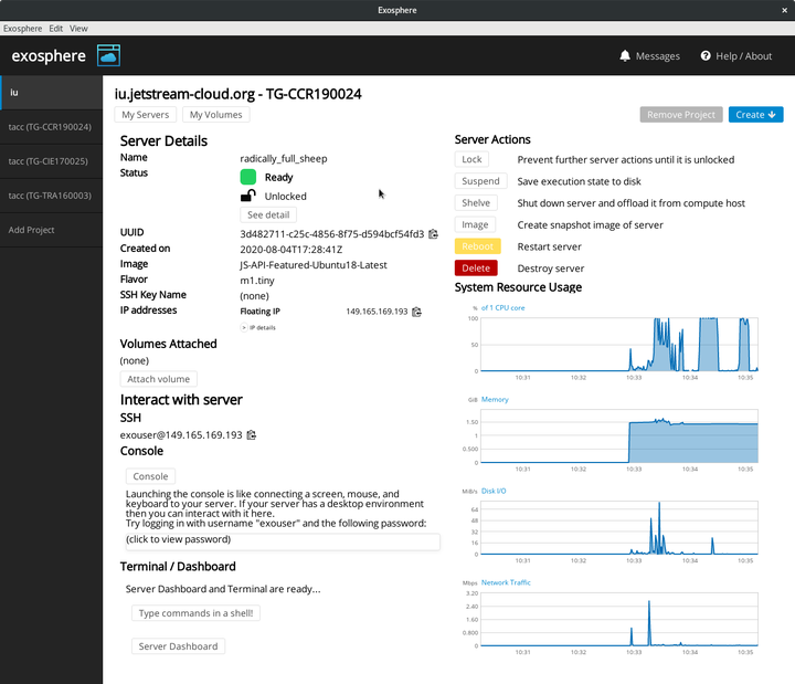 Exosphere provides researcher-friendly software for managing computing workloads on OpenStack cloud infrastruc- ture. Exosphere is a user-friendly alternative to Horizon, the default OpenStack graphical interface. Exosphere can be used with most research cloud infrastructure, requiring near-zero custom integration work.